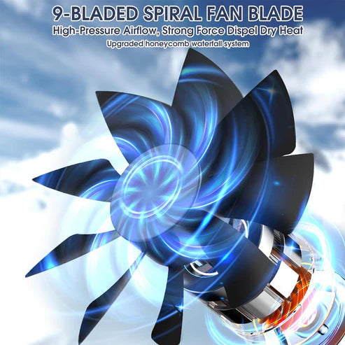 DISEÑO MULTIFUNCIONAL 2 EN 1: Combina ventilador de enfriamiento y humidificador de aire en una sola unidad compacta. La función de nebulización reduce la temperatura ambiente mientras agrega humedad al aire seco, creando un microambiente confortable para espacios de trabajo, dormitorios o áreas pequeñas sin equipos voluminosos.